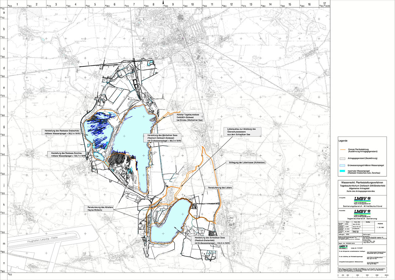 Das Regierungspräsidium Leipzig bestätigt mit dem Planfeststellungsbeschluss auf der Basis einer gefestigten Erkenntnisgrundlage seine Prognoseentscheidung vom Juni 2005, mit der der vorzeitige Beginn der nunmehr planfestgestellten Vorflutanbindung des Werbeliner Sees zugelassen worden war. Die Flutung des Werbeliner Sees war bereits 1995 durch eine bergrechtliche Entscheidung genehmigt worden.