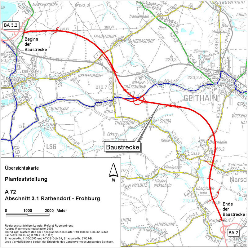 Das Regierungspräsidium Leipzig hat jetzt auf Antrag der DEGES mbH vom 07.11.2005 den Planungsabschnitt 3.1 der Bundesautobahn A 72 zwischen Chemnitz und Leipzig genehmigt. Damit kann der Neubau der Strecke zwischen den Ortschaften Rathendorf und Frohburg erfolgen.
