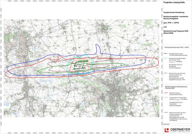 In Erfüllung einer Nebenbestimmung des Planfeststellungsbeschlusses zur Start- und Landebahn Süd mit Vorfeld hat die Flughafen Leipzig/Halle GmbH auf der Grundlage ihr vorliegender Prognosen zum Flugverkehrsaufkommen, dem mutmaßlichen Flugzeugmix und den aktuell festgesetzten Flugrouten ein aktualisiertes Datenerfassungssystem sowie eine darauf aufbauende Prognose der Entwicklung des Nachtfluglärms nach Maßgabe der im Planfeststellungsbeschluss festgelegten Kriterien bei der Landesdirektion Leipzig als Planfeststellungsbehörde vorgelegt. Die Prognose bezieht sich auf das Jahr 2020.