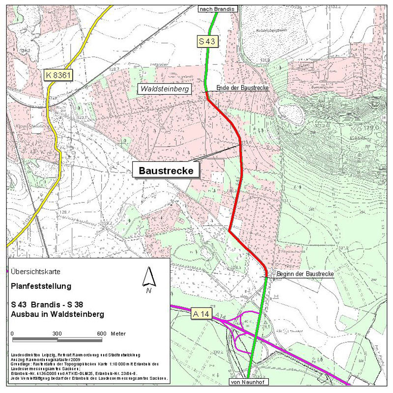 Die Landesdirektion Leipzig hat jetzt den vom Straßenbauamt Döbeln - nunmehr Straßenbauamt Chemnitz- beantragten Ausbau der Staatsstraße S 43 in Waldsteinberg mit dem Erlass des Planfeststellungsbeschlusses genehmigt.