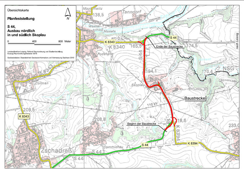 Auf Antrag des Straßenbauamtes Leipzig vom 29.06.2009 hat die Landesdirektion Leipzig den Planfeststellungsbeschluss für den Ausbau der Staatsstraße S 44 südlich, in und nördlich Skoplau erlassen. Damit besteht Baurecht für diese Maßnahme.