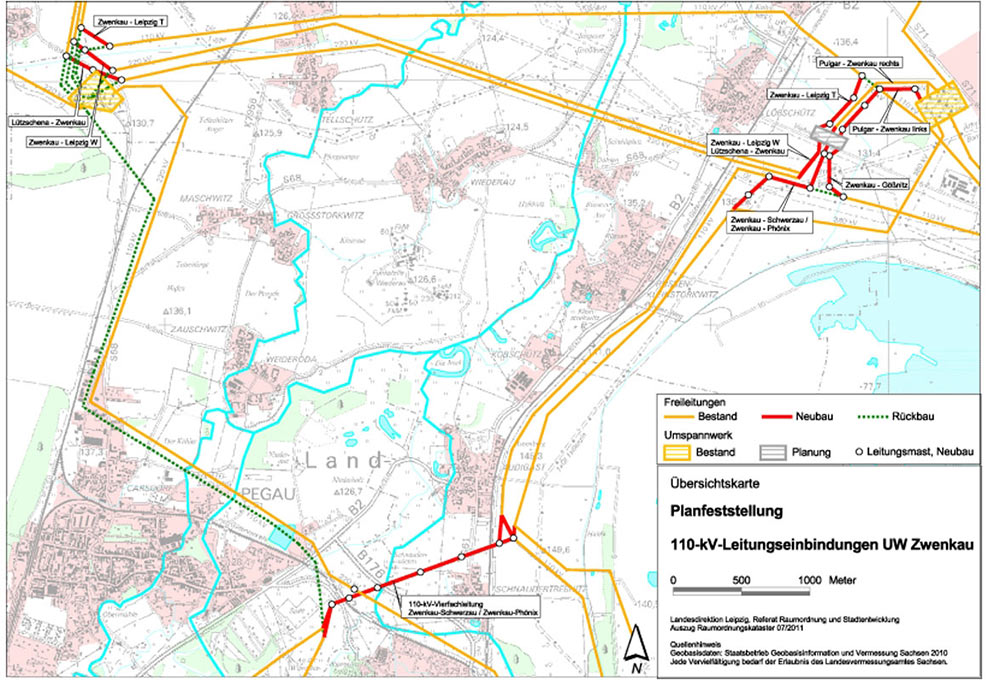 Die Landesdirektion Leipzig hat auf Antrag der envia Verteilnetz GmbH den Planfeststellungsbeschluss zum Vorhaben „110-kV-Leitungseinbindungen Umspannwerk Zwenkau“ erlassen. Die Leitungsbaumaßnahmen sind notwendig geworden, da die Anlagen Großdalzig und Lippendorf mittelfristig aus Altersgründen aus dem Betrieb genommen und durch das neu errichtete Umspannwerk Zwenkau ersetzt werden.