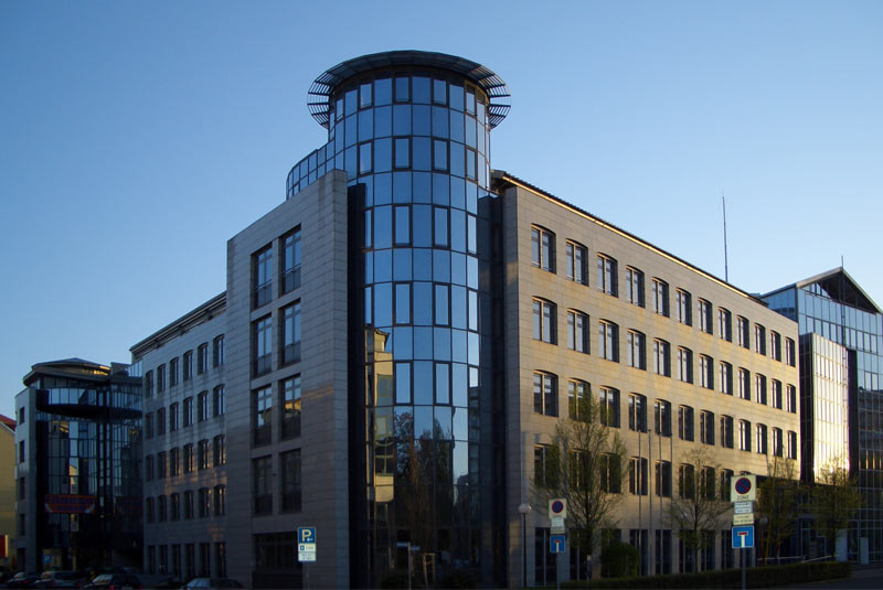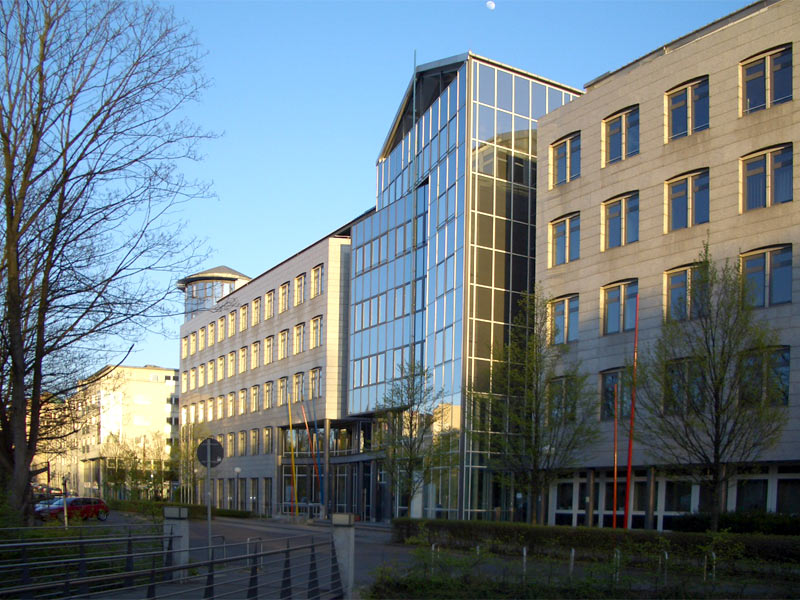 „In den Jahren 1993 bis 1996 entstand ein gegliederter Baukörper von über 100 Metern Länge, der neben zirka 400 Büroarbeitsplätzen über eine Tiefgarage mit 153 Stellplätzen verfügt. Der fünfgeschossige geschwungene Bau setzt zwischen Dufourstraße und Wundtstraße einen deutlichen städtebaulichen Akzent und schafft eine gelungene Neufassung der kriegszerstörten Raumkante entlang der Braustraße im Anschluss an die südliche Wohnbebauung.